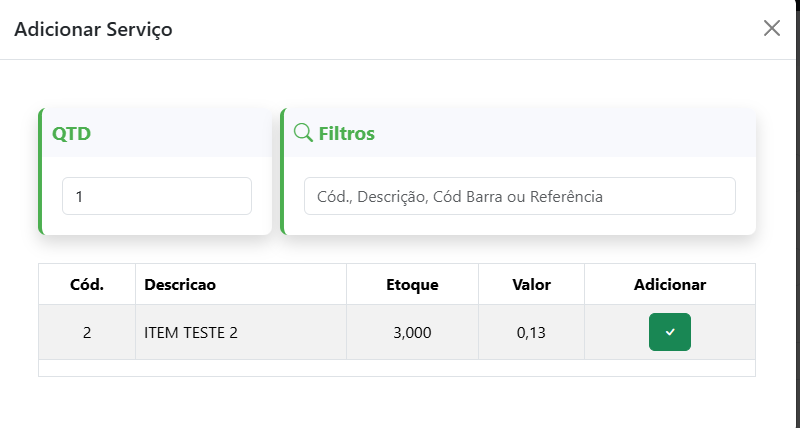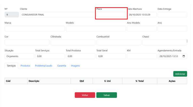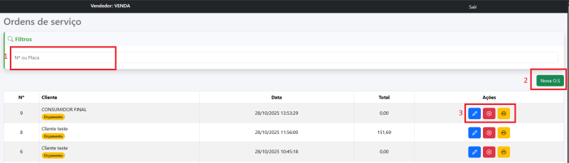 - Você faz o login com o mesmo usuário que entra no PDVCaptura de tela 2025-11-11 103155.png21.43 KB - Na tela inicial está a lista de ordens de serviço com as opções: 1 - Buscar a OS que já esta em andamento pelo número ou placa 2 - Iniciar uma nova OS 3 - Botões editar OS, Cancelar OS e Imprimir OSCaptura de tela 2025-11-11 103227.png44.71 KB - Ao Clicar em Nova OS, para iniciar uma nova ordem você primeiro vai escolher qual o cliente, podendo: 1 - Buscar 2 - Realizar um cadastro rápido se o cliente ainda não for cadastrado 3 - Seleciona o cliente para iniciar uma nova OSCaptura de tela 2025-11-11 103249.png25.95 KB - Para realizar um novo cadastro de cliente clicando em Cadastro rápido só é obrigatório os campos em negrito: Nome, UF e MunicípioCaptura de tela 2025-11-11 103300.png21.14 KB - Apos escolher o cliente, você preenche os dados da OS do mesmo modo como faz no PDV. Com a diferença que ao digitar a placa, será buscado os dados do veículo automaticamente na internet Captura de tela 2025-11-11 103333.png33.68 KB-Na aba serviços ou produtos você clica em Adicionar e vai aparecer essa janela para buscar o produto que deseja Captura de tela 2025-11-11 103347.png20.95 KB - Ao adicionar o produto, ele será mostrado na lista e você pode clicar em Editar para alterar o valor ou quantidade, ou clicar em Excluir para remover o produto da OS.
